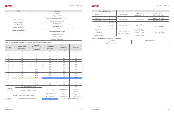 Shear Load y-direction( lb / anchor) 1 1059 847 895-472-761 2 1059 847 872-472-733 3 1059 847 848-472-705 4 1059 847 825-472-677 5 1144 915 902-484-761 6 1144 915 878-484-733 7 1144 915 855-484-705 8 1144 915 832-484-677 9 1314 1051 916-509-761 10 1314 1051 892-509-733 11 1314 1051 870-509-705 12 1314 1051 847-509-677 13 1483 1186 930-534-761 14 1483 1186 907-534-733 15 1483 1186 884-534-705 16 1483 1186 862-534-677
