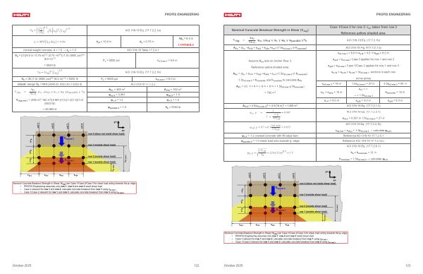 V b =( 9)( 1.0)( 5000 psi) 0. 5( 6.0 in) 1. 5 = 9353 lb f’ c = 5000 psi c a1, row 1 = 6.0 in check: design V b = MIN { 9549 lb; 9353 lb } = 9353 lb ACI 318-19 17.7.2.2