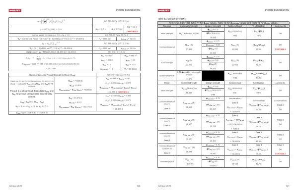 Reference ESR-4868 Table 11 for ϕ steel values, Table 12 for ϕ concrete values and Table 15 for ϕ bond values. Tension nominal strength design strength factored load % utilization comments