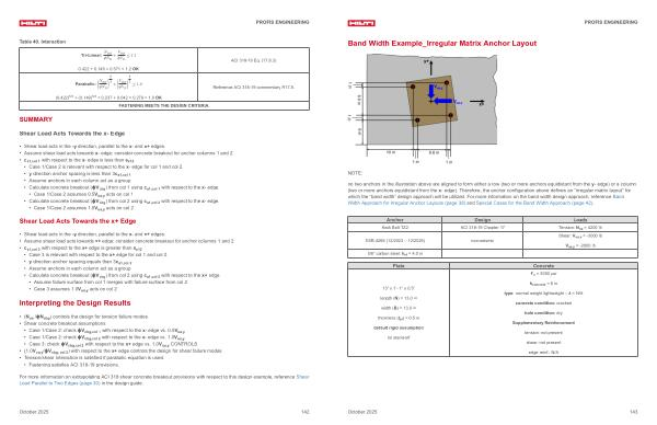 • Assume shear load acts towards x + edge: consider concrete breakout for anchor columns 1 and 2.