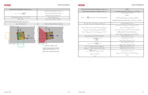 ACI 318-19 Eq.( 17.7.2.4.1b) c a2, min = 6.0 in 1.5c a1, col 1, 3 = 15 in ψ c, V = 1.0 cracked concrete, no edge bars Reference ACI 318-19 17.7.2.5.1 ψ parallel, V = 1.0 shear load acts towards x- edge Reference ACI 318-19 17.7.2.1( c).