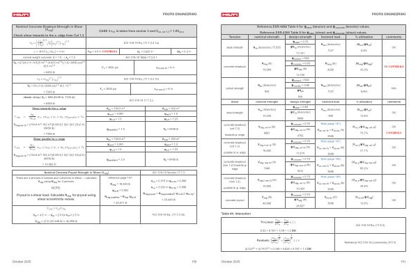 Reference ESR-4266 Table 6 for ϕ steel( shear) and ϕ concrete( shear) values. Tension nominal strength design strength factored load % utilization comments