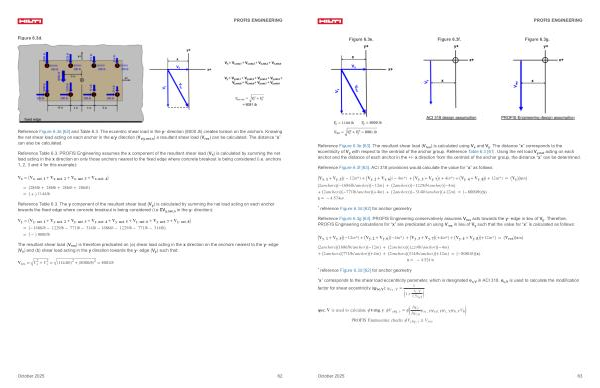 Reference Figure 6.3g [ 63 ]. PROFIS Engineering conservatively assumes V res acts towards the y- edge in lieu of V y. Therefore, PROFIS Engineering calculations for“ x” are predicated on using V res in lieu of V y such that the value for“ x” is calculated as follows: