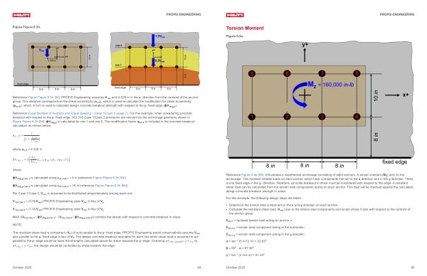 A Vco ψ ec, V ψ ed, V ψ c, V ψ h, V V b where: ϕV cbg, y, row 1 is calculated using c a1, row 1 = 8 in( reference Figure Figure 6.3h [ 64 ]) ϕV cbg, y, row 2 is calculated using c a1, row 2 = 18 in( reference Figure Figure 6.3h [ 64 ]) Per Case 1 / Case 2, V res is assumed to be distributed proportionately among each row: V res, row 1 =( 0.5)( V res) PROFIS Engineering uses V res in lieu of V y V res, row 2 =( 1.0)( V res) PROFIS Engineering uses V res in lieu of V y MAX {( V res, row 1 / ϕV cbg, y, row 1):( V res, row 2 / ϕV cbg, y, row 2)} controls the design with respect to concrete breakout in shear. NOTE:
