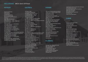 LED External Lights 1 x LED External Annexe Light LED Lighting – Roof , Kitchen , Ensuite 2 x LED Reading Lights in Bedroom 2 x LED Reading Lights in Lounge Smart Charger and Battery 2 x 100Amp DC Batteries 2 x 190W Solar Panels and 30Amp regulator Roof Top Digital Amplified TV Antenna 24 ” Flatscreen TV / DVD combo on Wall Mounted Bracket CD / Radio Player 2 x Internal Roof Speakers 2 x External Marine Speakers 12 Pin Trailer Plug with Charging & Fridge Cooling Capabilities 3 x Gas and 1 x 240V Hotplates with Mini Grill Microwave Oven Gas / Electric Hot Water System IBIS Air Command MK4 Reverse Cycle A / C or equivalent A / C 12V Rangehood 3 Way GAS / ELEC . Fridge with Separate Freezer . Tropical Rated and Vented through Roof . Fridge size supplied Separate 2 door 190L Power Points ( 2 x Bedroom , 1 x Kitchen , 1 x Lounge , 1 x Ensuite ) 240V 15Amp Inlet & 240V 10Amp Outlet Circuit Breaker & Earth Leakage Reversing Camera and Car Monitor Kit 12V / USB Socket at Kitchen Table and Outside Table 12V Benchtop Phone Charger - Bedside Tables TV Coaxial Point at Outside Table LED Entry Light and Grab Handle 12V Fan Hatch to Shower & Toilet Top Load Washing Machine ( Not Standard in family layouts , Front Load WM is optional ) Porcelain Bowl Toilet 50Amp Anderson Plug Portable Solar Charge Point