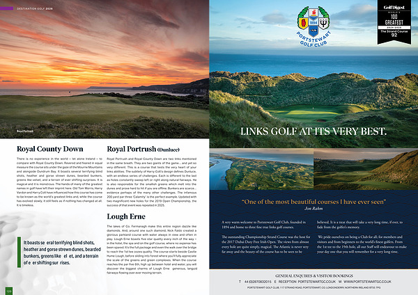 There is no experience in the world – let alone Ireland – to compare with Royal County Down. Revered and feared in equal measure the course sits under the gaze of the Mourne Mountains and alongside Dundrum Bay. It boasts several terrifying blind shots, heather and gorse strewn dunes, bearded bunkers, greens like velvet, and a terrain of ever shifting surprises. It is magical and it is monstrous. The hands of many of the greatest names in golf have left their imprint here. Old Tom Morris, Harry Vardon and Harry Colt have influenced how this course has come to be known as the world’ s greatest links and, while the course has evolved slowly, it still feels as if nothing has changed at all. It is timeless.