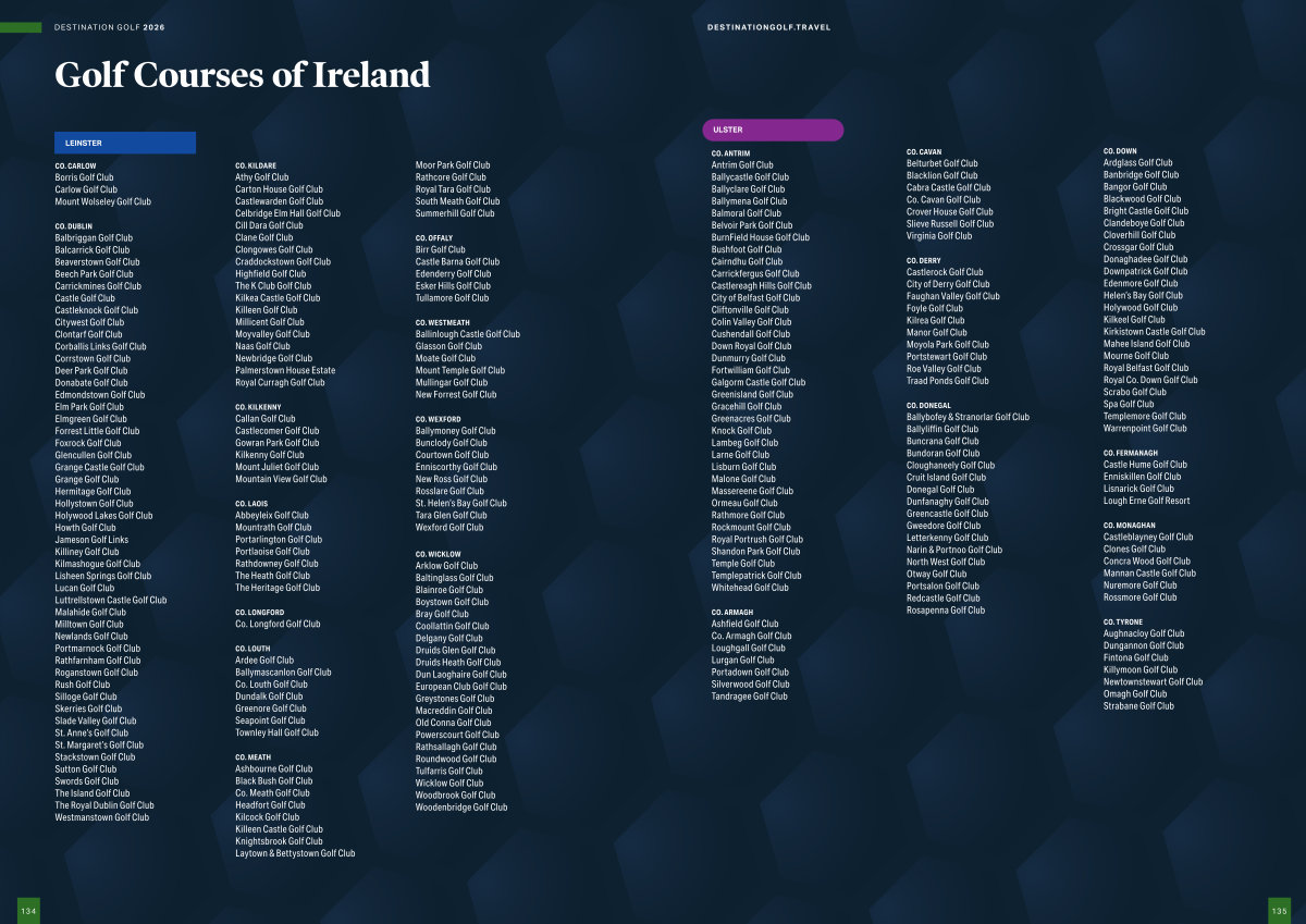 Balbriggan Golf Club Balcarrick Golf Club Beaverstown Golf Club Beech Park Golf Club Carrickmines Golf Club Castle Golf Club Castleknock Golf Club Citywest Golf Club Clontarf Golf Club Corballis Links Golf Club Corrstown Golf Club Deer Park Golf Club Donabate Golf Club Edmondstown Golf Club Elm Park Golf Club Elmgreen Golf Club Forrest Little Golf Club Foxrock Golf Club Glencullen Golf Club Grange Castle Golf Club Grange Golf Club Hermitage Golf Club Hollystown Golf Club Holywood Lakes Golf Club Howth Golf Club Jameson Golf Links Killiney Golf Club Kilmashogue Golf Club Lisheen Springs Golf Club Lucan Golf Club Luttrellstown Castle Golf Club Malahide Golf Club Milltown Golf Club Newlands Golf Club Portmarnock Golf Club Rathfarnham Golf Club Roganstown Golf Club Rush Golf Club Silloge Golf Club Skerries Golf Club Slade Valley Golf Club St. Anne’ s Golf Club St. Margaret’ s Golf Club Stackstown Golf Club Sutton Golf Club Swords Golf Club The Island Golf Club The Royal Dublin Golf Club Westmanstown Golf Club