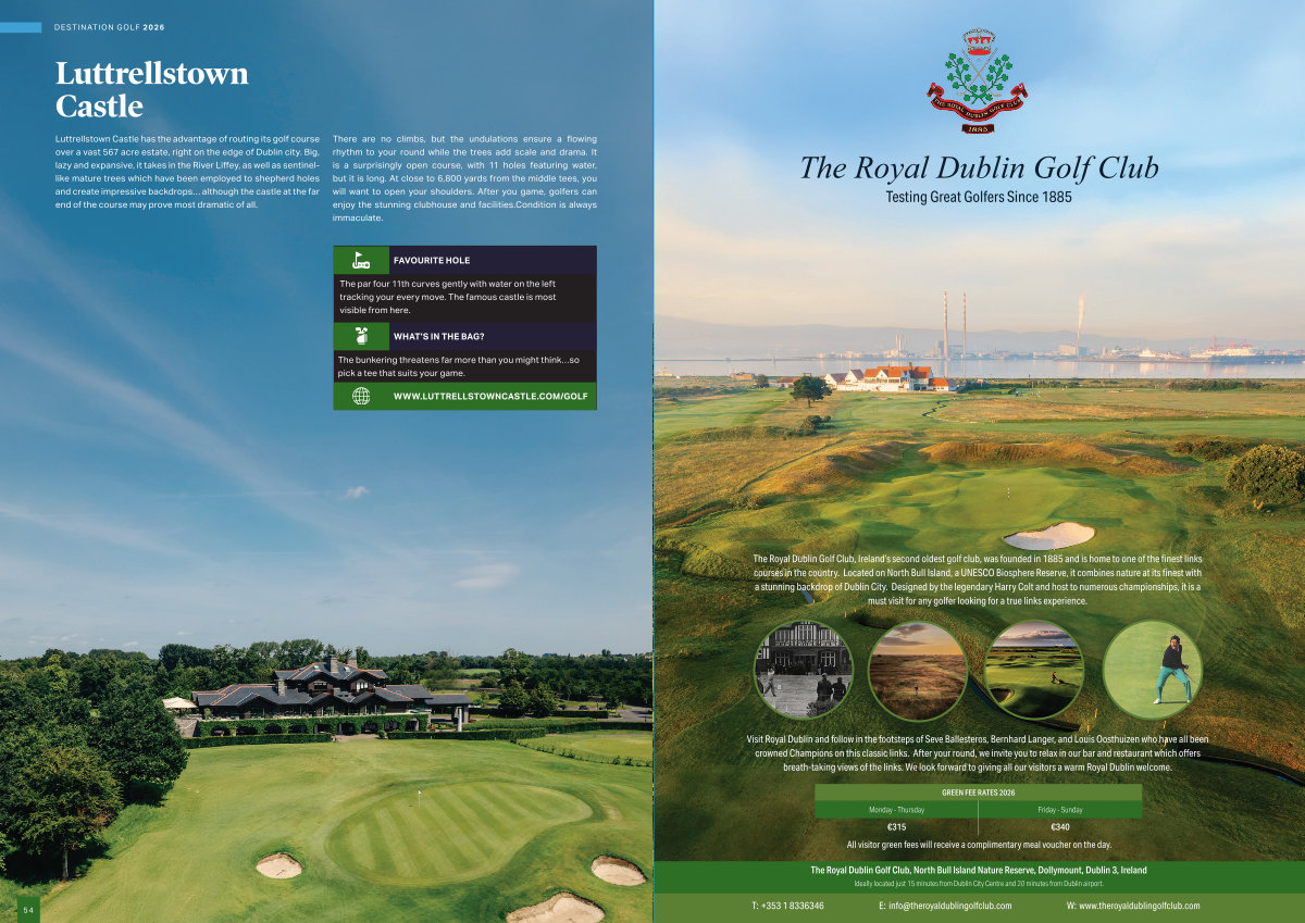 The Royal Dublin Golf Club, Ireland’ s second oldest golf club, was founded in 1885 and is home to one of the finest links courses in the country. Located on North Bull Island, a UNESCO Biosphere Reserve, it combines nature at its finest with a stunning backdrop of Dublin City. Designed by the legendary Harry Colt and host to numerous championships, it is a must visit for any golfer looking for a true links experience.