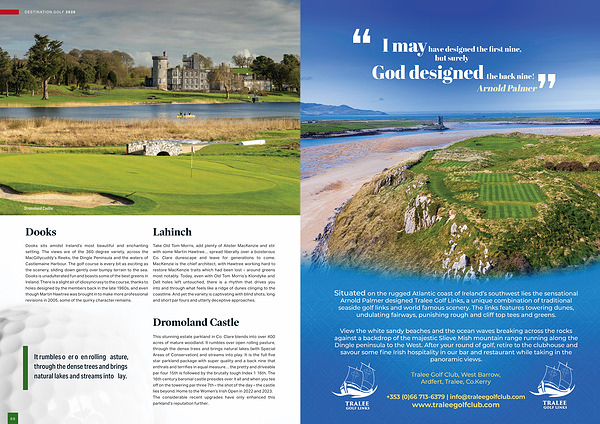 Dooks sits amidst Ireland’ s most beautiful and enchanting setting. The views are of the 360 degree variety, across the MacGillycuddy’ s Reeks, the Dingle Peninsula and the waters of Castlemaine Harbour. The golf course is every bit as exciting as the scenery, sliding down gently over bumpy terrain to the sea. Dooks is unadulterated fun and boasts some of the best greens in Ireland. There is a slight air of idiosyncrasy to the course, thanks to holes designed by the members back in the late 1960s, and even though Martin Hawtree was brought in to make more professional revisions in 2005, some of the quirky character remains.