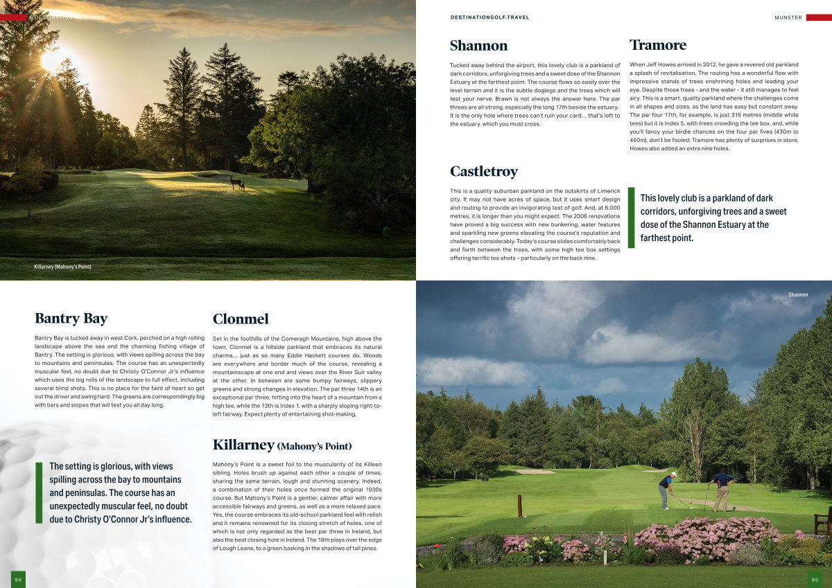 Mahony’ s Point is a sweet foil to the muscularity of its Killeen sibling. Holes brush up against each other a couple of times, sharing the same terrain, lough and stunning scenery. Indeed, a combination of their holes once formed the original 1930s course. But Mahony’ s Point is a gentler, calmer affair with more accessible fairways and greens, as well as a more relaxed pace. Yes, the course embraces its old-school parkland feel with relish and it remains renowned for its closing stretch of holes, one of which is not only regarded as the best par three in Ireland, but also the best closing hole in Ireland. The 18th plays over the edge of Lough Leane, to a green basking in the shadows of tall pines.