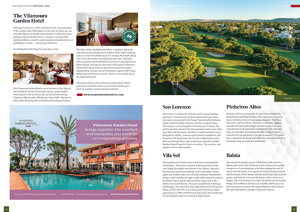 The magnificent 27-hole course at Vila Sol is surrounded by 150 hectares. The resort is situated in the heart of one of the most highly developed tourist areas in the Algarve, and yet it has stunning natural surroundings with a vast range of trees, plants and wildlife. Here you will find a fabulous Donald Steel design, which stretches through a wide valley naturally sculpted by Mother Nature and divided into three loops, each with a different level of difficulty. These are named Prime, Challenge and Prestige. The course has twice played host to the Portuguese Open, in 1992 and 1993. It was honoured by the Green Globe organisation in 1996 with the Green Flag award, the certification for meeting their high environmental requirements.
