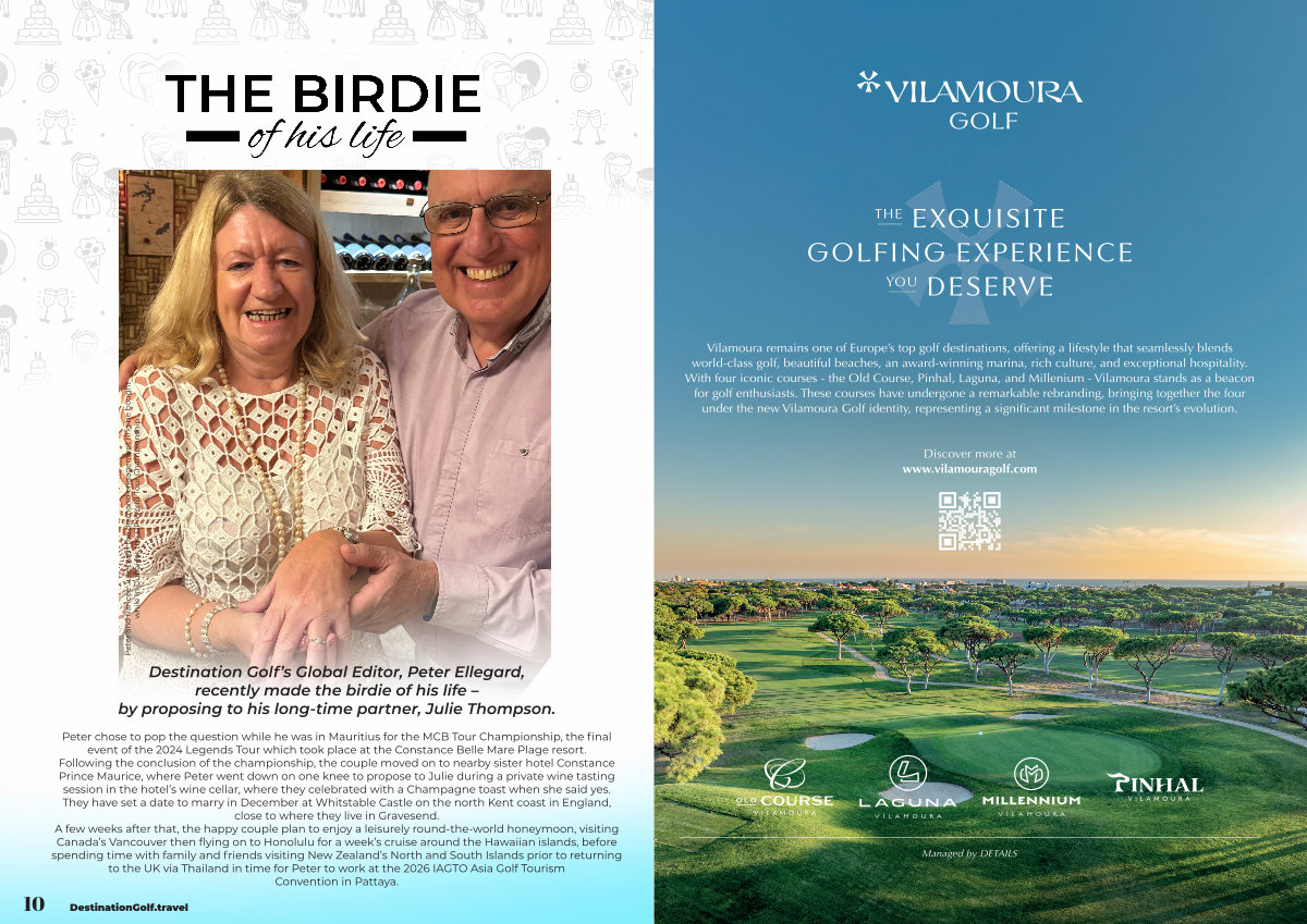 Destination Golf’ s Global Editor, Peter Ellegard, recently made the birdie of his life – by proposing to his long-time partner, Julie Thompson.