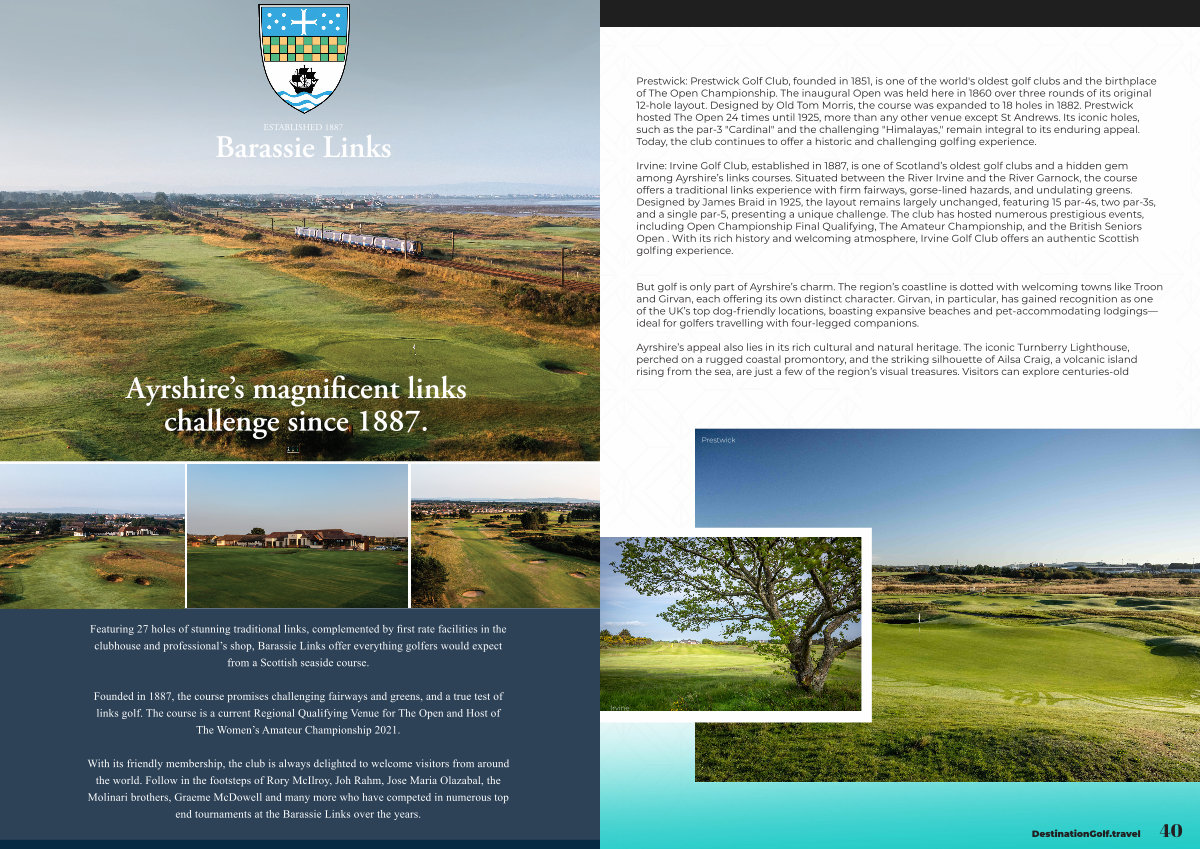 Featuring 27 holes of stunning traditional links, complemented by first rate facilities in the clubhouse and professional’ s shop, Barassie Links offer everything golfers would expect from a Scottish seaside course.