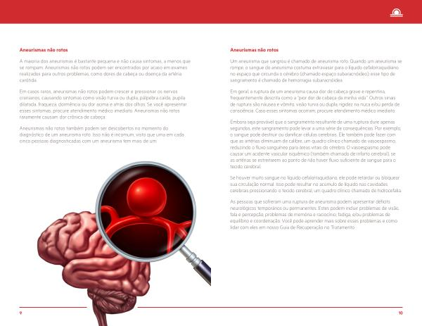 As pessoas que sofreram uma ruptura de aneurisma podem apresentar déficits neurológicos temporários ou permanentes . Estes podem incluir problemas de visão , fala e percepção ; problemas de memória e raciocínio ; fadiga ; e / ou problemas de equilíbrio e coordenação . Você pode aprender mais sobre esses problemas e como lidar com eles em nosso Guia de Recuperação no Tratamento .