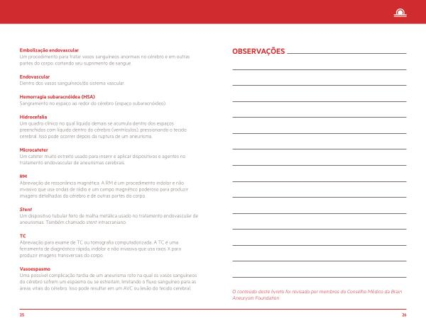 O conteúdo deste livreto foi revisado por membros do Conselho Médico da Brain Aneurysm Foundation