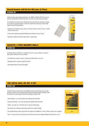 The HSS-R Extreme drill bits Sets from DeWalt has been manufactured to a very high standard courtesy of the innovative tapered web which greatly reduces breakage , while the gold ferrous oxide coating prevents overheating for longer bit life