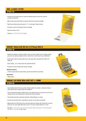 These DeWalt metal drill bit sets contain drill bits suitable for portable or stationary drilling of steel , alloyed and non alloyed metal up to 900N / mm