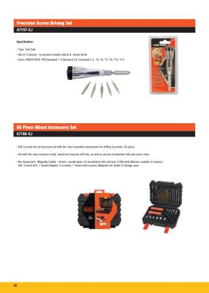 Box Equipment .: Magnetic Holder - 60mm , countersinks , 20 screwdriver bits ( 25mm ), 9 HSS drill ( titanium coated ), 6 masonry drill , 5 wood drill , 1 Socket Adapter , 6 sockets , 1 metal centre punch , Magnetic bit holder & Storage case .