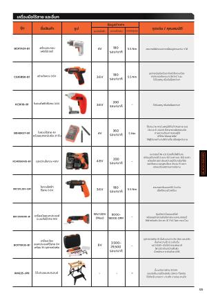 แบตเตอรี � Ni-Cd ช่วยเก็บไฟได้นาน ปรับมุมใช้งานได้ 2 แบบ 90 องศา และ 180 องศา พร้อมไฟ LED ส่องสว่างแม้ใช้งานในที �มืด ดอกไขควง และลูกบล็อค จํานวน 15 ดอก ปรับเปลี �ยนได้ตามการใช้งาน |