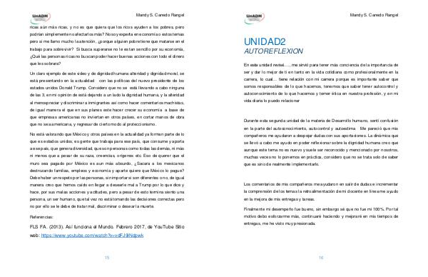 Un claro ejemplo de este video y de dignidad humana alteridad y dignidad moral, se está presentando en la actualidad con las políticas del nuevo presidente de los estados unidos Donald Trump. Considero que no se está llevando a cabo ninguna de las 3, en mi opinión de está dejando a un lado la dignidad humana, y la alteridad al menospreciar y discriminar a inmigrantes así como hacer comentarios machistas, de igual manera el que en sus planes este hacer crecer su economía a base de que empresas americanas no inviertan en otros países, en cortar manos de obra que no sea americana, y regresar de cierto modo al proteccionismo.