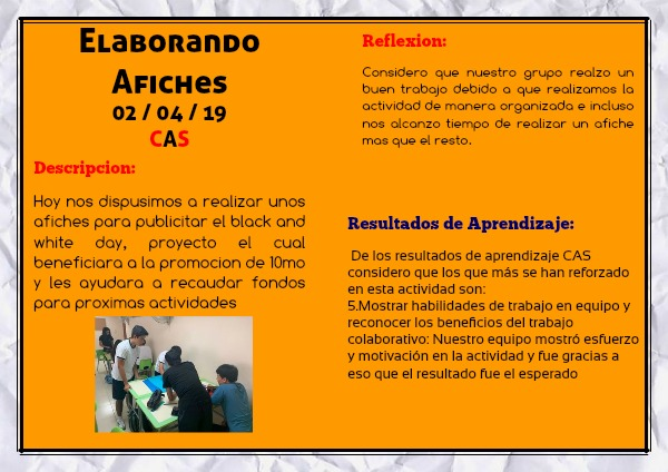 Considero que nuestro grupo realzo un buen trabajo debido a que realizamos la actividad de manera organizada e incluso nos alcanzo tiempo de realizar un afiche mas que el resto.
