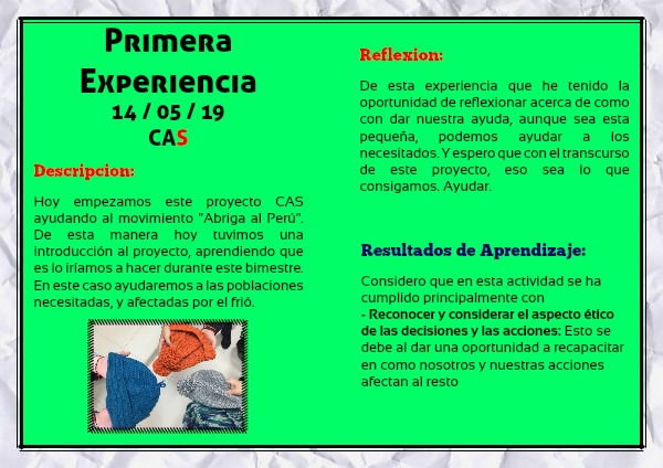 Hoy empezamos este proyecto CAS ayudando al movimiento "Abriga al Perú". De esta manera hoy tuvimos una introducción al proyecto, aprendiendo que es lo iríamos a hacer durante este bimestre. En este caso ayudaremos a las poblaciones necesitadas, y afectadas por el frió.