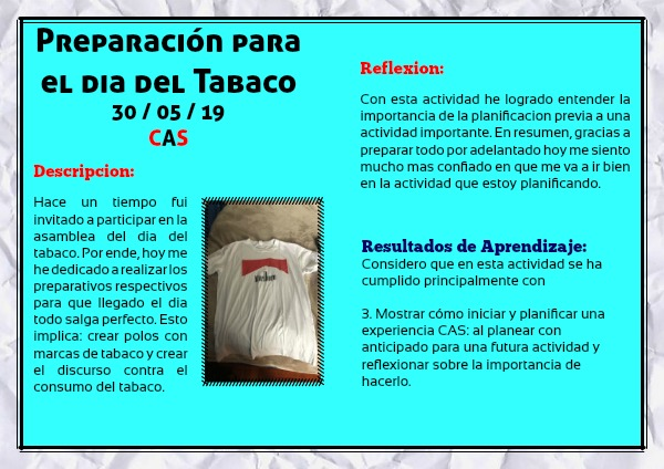 Hace un tiempo fui invitado a participar en la asamblea del dia del tabaco. Por ende, hoy me he dedicado a realizar los preparativos respectivos para que llegado el dia todo salga perfecto. Esto implica: crear polos con marcas de tabaco y crear el discurso contra el consumo del tabaco.