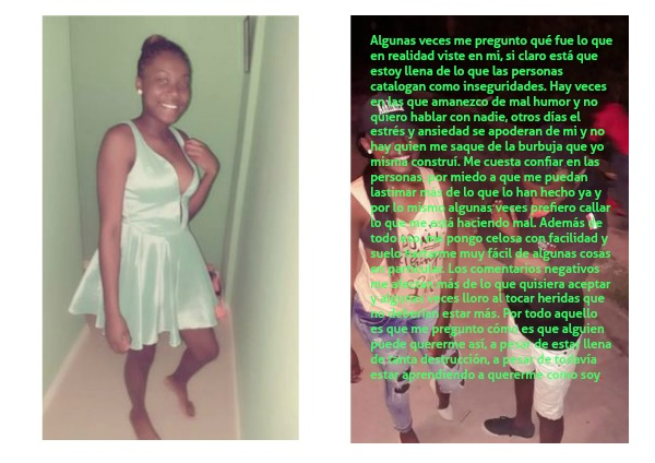 Algunas veces me pregunto qué fue lo que en realidad viste en mi, si claro está que estoy llena de lo que las personas catalogan como inseguridades. Hay veces en las que amanezco de mal humor y no quiero hablar con nadie, otros días el estrés y ansiedad se apoderan de mi y no hay quien me saque de la burbuja que yo misma construí. Me cuesta confiar en las personas, por miedo a que me puedan lastimar más de lo que lo han hecho ya y por lo mismo algunas veces prefiero callar lo que me está haciendo mal. Además de todo eso, me pongo celosa con facilidad y suelo hartarme muy fácil de algunas cosas en particular. Los comentarios negativos me afectan más de lo que quisiera aceptar y algunas veces lloro al tocar heridas que no deberían estar más. Por todo aquello es que me pregunto cómo es que alguien puede quererme así, a pesar de estar llena de tanta destrucción, a pesar de todavía estar aprendiendo a quererme como soy.