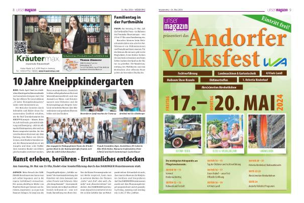 RIED . Ende April fand im städtischen Kindergarten Raimundstraße ein besonderes Ereignis statt : Der Tag der offenen Tür zum Jubiläum „ 10 Jahre Kneippkindergarten “ lockte viele Interessierte an .