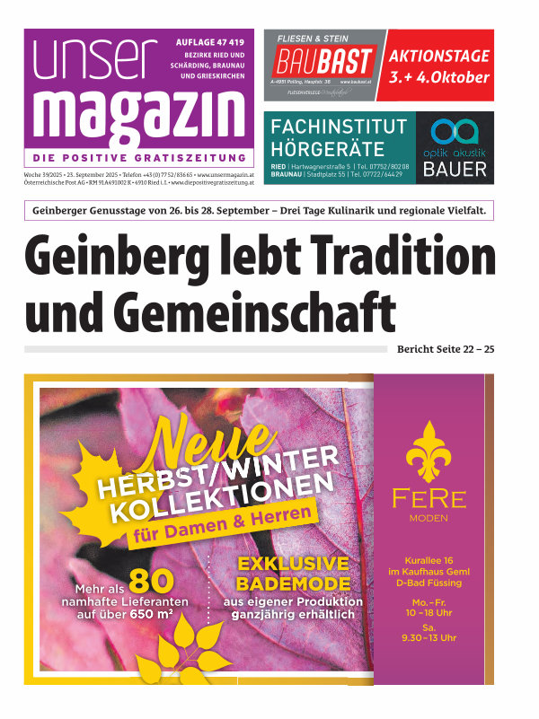 Woche 39 / 2025 • 23. September 2025 • Telefon + 43( 0) 77 52 / 836 65 • www. unsermagazin. at Österreichische Post AG • RM 91A491002 K • 4910 Ried i. I. • www. diepositivegratiszeitung. at