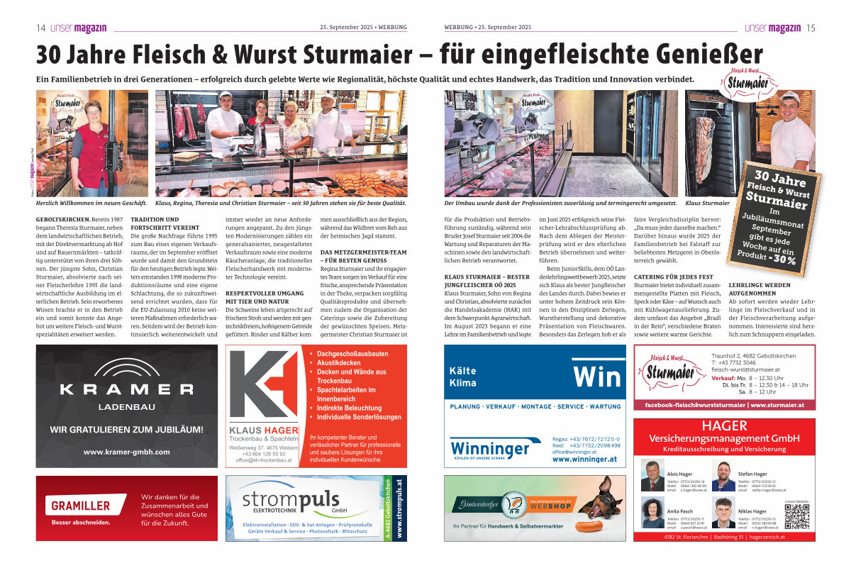 faire Vergleichsdisziplin hervor: „ Da muss jeder dasselbe machen.“ Darüber hinaus wurde 2025 der Familienbetrieb bei Falstaff zur beliebtesten Metzgerei in Oberösterreich gewählt.