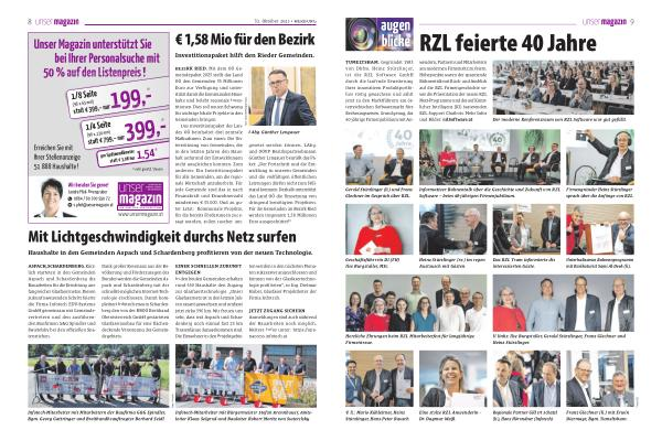 TUMELTSHAM . Gegründet 1983 von Dkfm . Heinz Stürzlinger , ist die RZL Software GmbH durch die laufende Erweiterung ihres innovativen Produktportfolios stetig gewachsen und zählt jetzt zu den Marktführern am österreichischen Softwaremarkt fürs Rechnungswesen . Grund genug , das 40-jährige Firmenjubiläum mit Anwendern , Partnern und Mitarbeitern am modernen Firmensitz zu feiern . Höhepunkte waren der spannende Bühnentalk mit Rück- und Ausblick auf die RZL Firmengeschichte sowie die Präsentation der neuen RZL Next-Programme und des auf Künstlicher Intelligenz ( KI ) basierenden RZL Support Chatbots . Mehr Infos und Bilder : rzlSoftware . at Der moderne Konferenzraum von RZL Software war gut gefüllt .