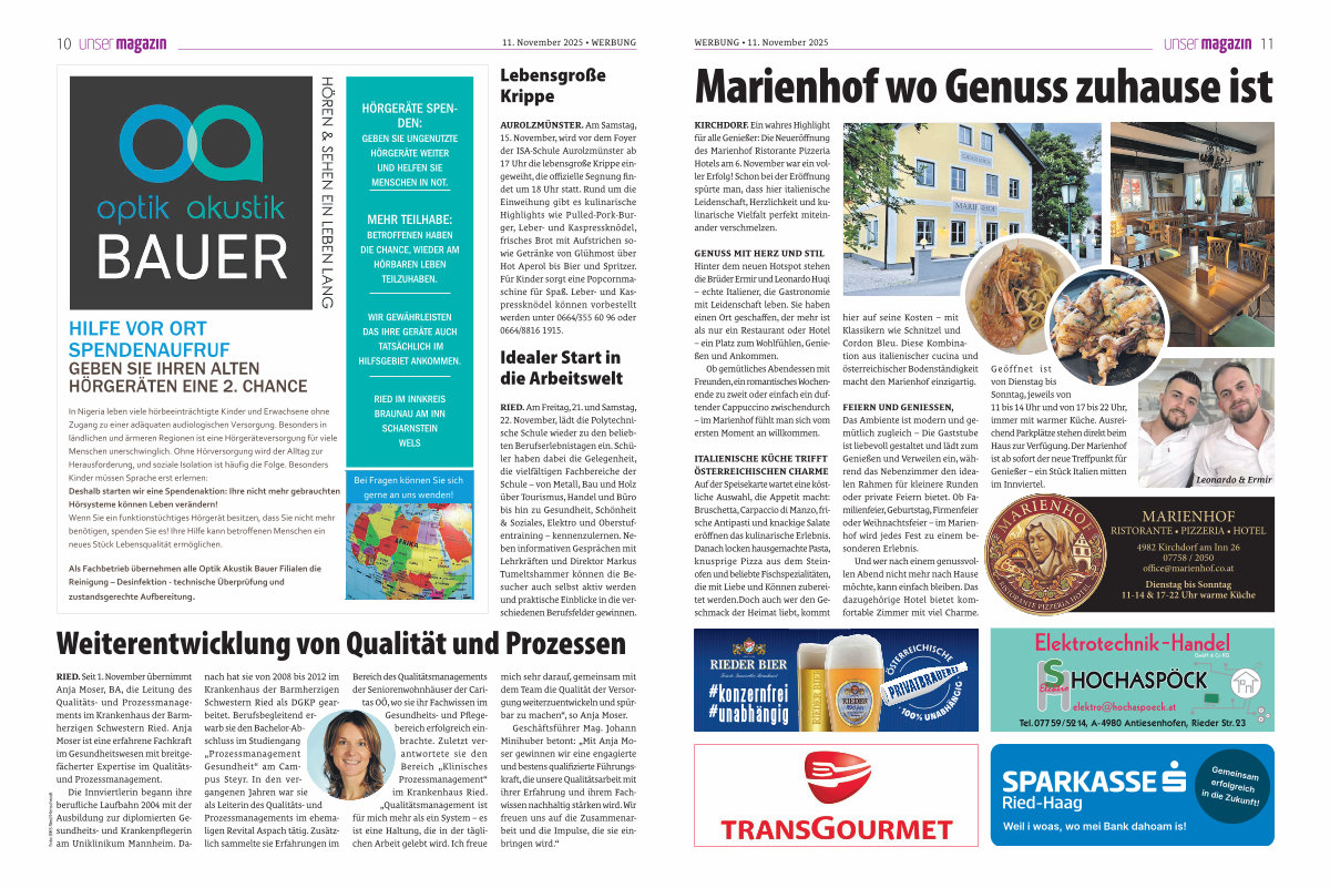 RIED. Seit 1. November übernimmt Anja Moser, BA, die Leitung des Qualitäts- und Prozessmanagements im Krankenhaus der Barmherzigen Schwestern Ried. Anja Moser ist eine erfahrene Fachkraft im Gesundheitswesen mit breitgefächerter Expertise im Qualitätsund Prozessmanagement.