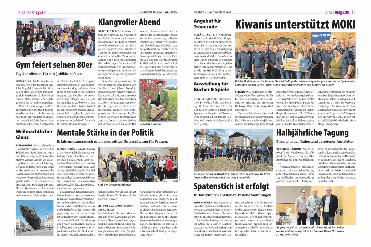 Der neue Präsident stellte dabei ein abwechslungsreiches Programm für das kommende Vereinsjahr vor, das von sozialem Engagement und beliebten Veranstaltungsreihen geprägt ist. Neben den regelmäßigen Meetings stehen vier Hauptveranstaltungen im Mittelpunkt: Bereits im November beteiligt sich der Club am Punschstand im Rahmen des „ Schärdinger Winterzaubers“. Im Frühjahr folgt am 17. und 18. April der Weinfrühling im Schloss Sigharting, ehe am 13. Juni das Kiwanis-Konzert den