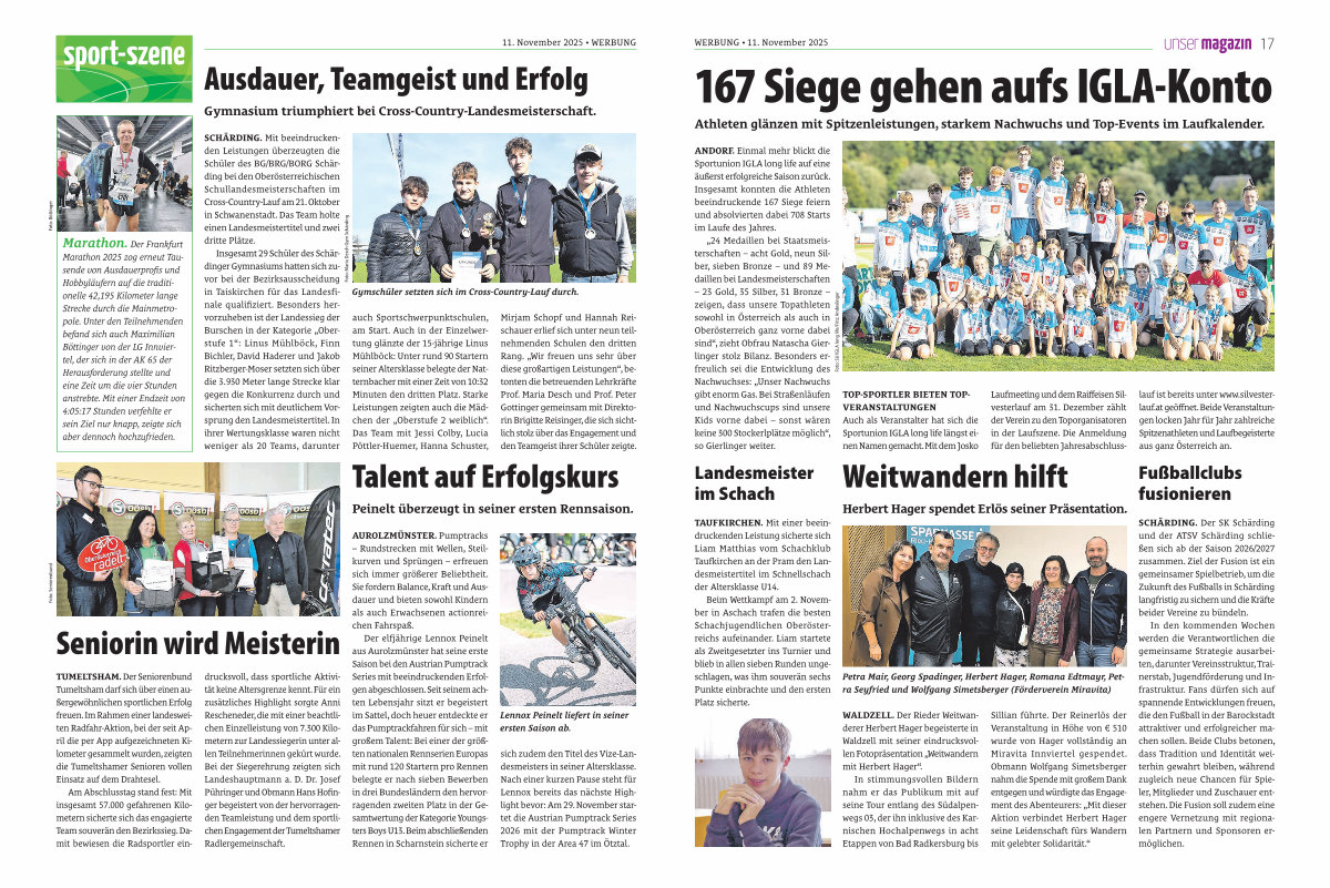 ANDORF. Einmal mehr blickt die Sportunion IGLA long life auf eine äußerst erfolgreiche Saison zurück. Insgesamt konnten die Athleten beeindruckende 167 Siege feiern und absolvierten dabei 708 Starts im Laufe des Jahres.