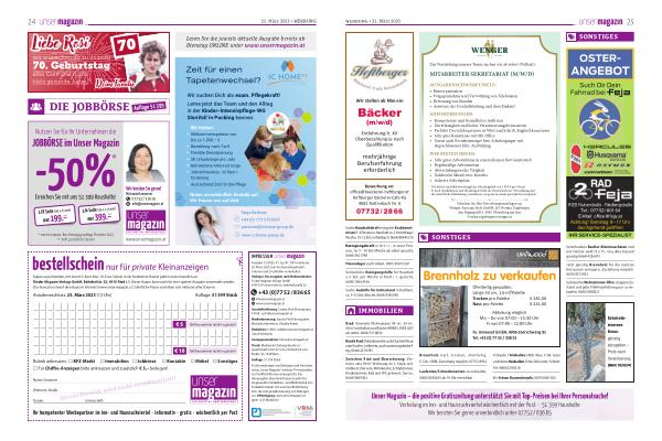 Lesen Sie die jeweils aktuelle Ausgabe bereits ab Dienstag ONLINE unter www . unsermagazin . at