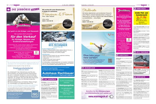 Bestellen Sie Ihre Kleinanzeigen und Glückwünsche auch online auf www . unsermagazin . at