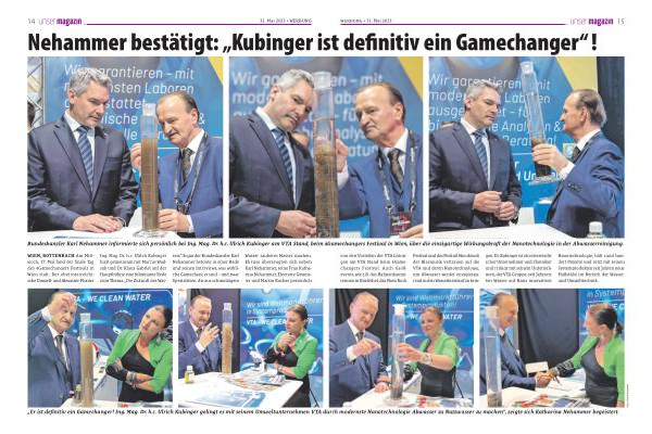 Ing . Mag . Dr . h . c . Ulrich Kubinger hielt gemeinsam mit Marcus Wadsak und Dr . Klaus Gabriel auf der Hauptbühne eine fulminante Rede zum Thema „ Die Zukunft des Wassers |