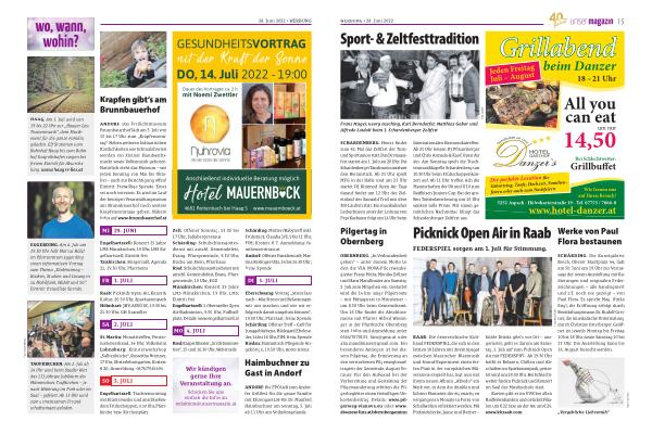 Raab : Picknick-Open Air , Kunst & Kultur , 20.30 Uhr , Sparkassenpark Höhnhart : JHV , ASVÖ SC , 19.30 bis 21.30 Uhr , GH Gramiller