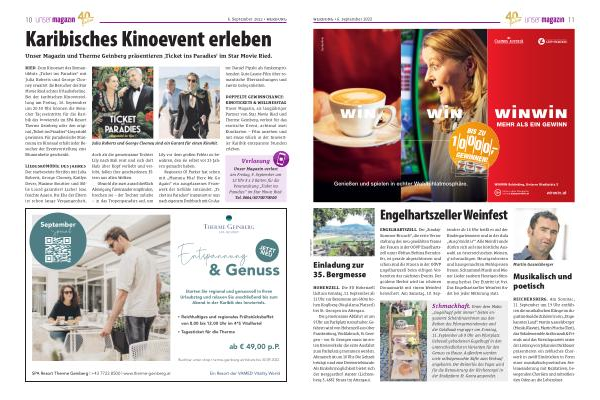 Verlosung Unser Magazin verlost am Freitag , 9 . September um 12 Uhr 8 x 2 Karten für die Veranstaltung „ Ticket ins Paradies “ im Star Movie Ried . Tel . 0664 / 6070070000