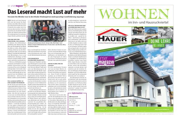 RIED . Bereits seit dem Sommer 2021 tourt das Leserad der Stadtbücherei durch Ried . Heuer konnte das erfolgreiche Projekt durch eine Förderung des Landes noch einmal ausgebaut werden . In Zusammenarbeit mit den Rieder Kindergärten soll dadurch insbesondere die Lesekompetenz bei mehrsprachigen Kindern gefördert werden .