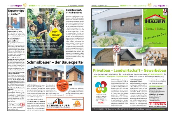 Andererseits nutzen die angehenden Häuselbauer , Sanierer und Renovierer das prägnant zusammengefasste Sammelsurium an wichtigen Informationen , Aktionen und Kontaktdaten rund ums Bauen , um einen breitgefächerten Einblick zu gewinnen , unterschiedlichste Betriebe kennenzulernen und verschiedene Möglichkeiten zu entdecken . Wir als Unser Magazin-Team sind voller Stolz , dass unsere Sonderausgabe stets so großen Anklang auf beiden Seiten der Bauwelt findet . Auch in der heurigen Herbstausgabe sind die nächsten Seiten prall gefüllt mit Know-How und Angeboten der Bauexperten .