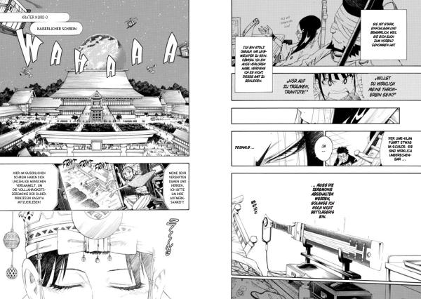 Sie ist stark , Sie ist stark , einfühlsam und einfühlsam und beharrlich , weil beharrlich , weil sie sich Euch sie sich Euch zum Vorbild zum Vorbild genommen hat . genommen hat . Wer soll beharrlich sein ? Ich bin stolz Ich bin stolz darauf , ihr Leibdarauf , ihr Leibwächter zu sein . wächter zu sein . Obwohl ich ein Obwohl ich ein Auge verloren Auge verloren habe , verdiene habe , verdiene ich es nicht , ich es nicht , dieses Amt zu dieses Amt zu bekleiden . bekleiden . „ Willst du wirklich meine Thron- erbin sein ?" „ Hör auf zu träumen , Trantüte !" Der ume-Klan führt etwas im Schilde . Sie sind wirklich unberechenbar … Ja … Deshalb … … muss die … muss die Zeremonie Zeremonie abgehalten abgehalten werden , werden , solange ich solange ich noch nicht noch nicht bettlägerig bettlägerig bin . bin .