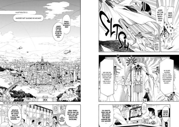 Wer seid ihr ?! Hier ist die Amtsresidenz von … Bürgermeister ! AN SILBER- KAISERIN FUJIYA TAKE- NOUCHI SOWIE ALLE ANDEREN ANGEHÖRIGEN DES KAISER- HAUSES … WIR SIND DIE MITGLIEDER DER TENGU-PARTEI , FREUNDE DER FREIHEIT UND GLEICH- STELLUNG ! Schon wieder ein anschlag ? Ich dachte , dass das mit der Thronbesteigung der neuen Kaiserin endlich aufhört … … MON- ARCHIE ABGE- SCHAFFT …