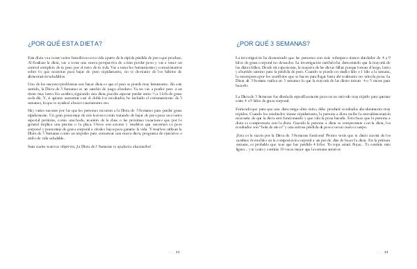 ¡ Esta es la razón por la Dieta de 3 Semanas funciona! Pronto verás que te darás cuenta de los cambios favorables en la composición corporal a un par de días de hacer la dieta. En la primera semana, es probable que veas que has perdido 4 kilos. Tu ropa estará flojas... Te sentirás más ligero... y te verás y sentirás 10 veces mejor que la semana anterior.