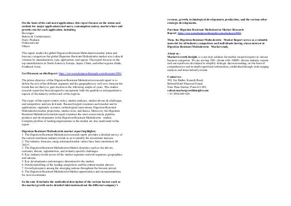 1. The Digestion Resistant Maltodextrin research report provides a detailed survey of