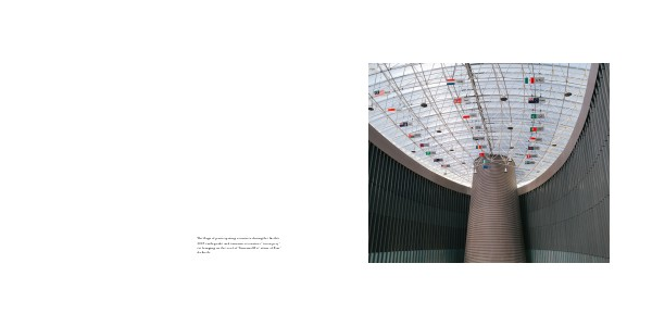 2004 earthquake and tsunami reconstruc- tuion project hanging on the roof of Tsunami Mu- seum of Banda Aceh.