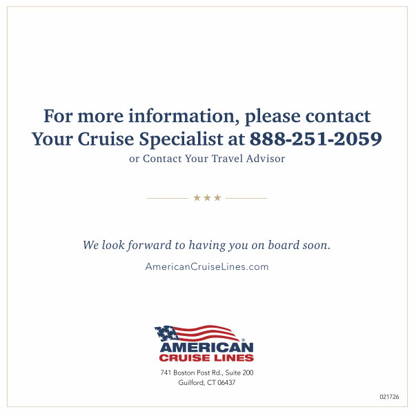 We look forward to having you on board soon. AmericanCruiseLines. com