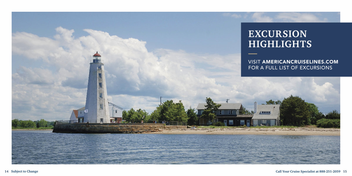 VISIT AMERICANCRUISELINES. COM FOR A FULL LIST OF EXCURSIONS