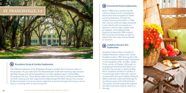 The affluent ambiance of the Rosedown Estate is evident the minute you step on the property . As you walk down the flowered path lined with towering oaks towards the Main House , you will be greeted by our lively resident expert , Tamie Miller . Throughout the tour , Tamie delves deep into the family history of Daniel and Martha Turnbull , sharing how their experiences helped shape the Main House into a home . At the conclusion of your excursions , take time to peruse the grounds on your own or relax in a rocking chair on the front porch .